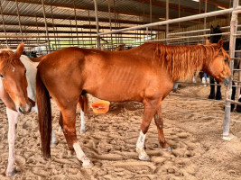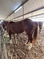 QH 8 YR SORREL MARE 8-year-old GRADE sorrel quarter horse mare. She leads, loads, ties and stands for farrier. She has been worked in a round pen and saddled and sat on but is not broke to ride. It shouldn't take much to break her or you can use her for breeding or as a recipient mare. I was told she has had a few babies, but I have never bred her. Selling because she is GRADE and I do not need a recip mare this year. Horse Sale Saturday 4/11/26 | 151 | $ 2,000.00 |