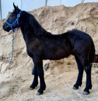 FRESIAN STDBRED YEARLING BAY FILLY "MIDNIGHT" Midnight is a yearling filly that's just hard not to love. She's got Friesian, Trotter, Standardbred, and Morgan blood running through her veins, and you can see every bit of it in the way she moves — smooth, fluid, and just a pleasure to watch. Her daddy is the handsome Friesian Sport Horse High Falls Thunder, and her mama is out of CJ Jessie, a proven movin' by and buggy horse. Whether you want to put her under cart or go English, this girl is ready to shine. She really is the best of all worlds MARCH 14 2026 SADDLES START AT 6 PM | 519 | $ 1,700.00 |