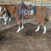 PT PONY 3 YR SOR/WH GELDING. "BLAZE" Meet Blaze — a 3 year old sorrel and white gelding with a blaze face and a heart as big as they come. He's broke to ride AND drive, and when we say broke, we mean it. Our 3 year old daughter rides this horse around bareback — that right there tells you everything you need to know about his temperament. He's young but goes like an old broke horse, easy going and gentle every single time. Blaze is the kind of horse that comes along once in a while and makes everybody happy. 📍13826 S St Hwy 19, Elkhart Texas 7 MARCH 14 2026 SADDLES START AT 6 PM | 530 | $ 2,000.00 |