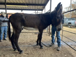 DONKEY 20 YR BROWN JACK Over the past 7 years he has sired 20 mammoths and 3 mules. He will cover both Jenny's and Mares. I have not rode him in 2 years, but when I was riding l rode at several wagon races, and the trails in Athens, Rusk, and Sabine National Forest. Easy to handle, wants to please HORSE SALE DECEMBER 20,2025 @ 6PM W SADDLES | 252 | $ 600.00 |