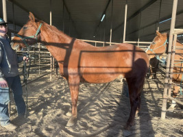 QH 17 YR SORREL GELDING HAS BEEN A COMPANION HORSE ALL HIS LIFE VERY SWEET AND LOVING. HE LEADS,LOADS, AND STANDS FOR THE FARRIER. JANUARY 31,2026 HORSE SALE SADDLES START AT 6 PM HORSES AROUND 7:30PM | 751 | $ 575.00 |