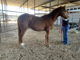 Q PONY 2 YR SORREL MARE. "CARLA" Sorrel Mare – Pony/Quarter Horse Cross – Kid Project Prospect This sweet sorrel mare is the perfect size and mindset for a young rider looking for a project. She’s a pony/Quarter Horse cross with a willing attitude and a calm, sensible way of going. All her groundwork is complete and solid. She leads, loads, ties, lunges, and stands quietly for grooming. She’s been handled consistently and respectfully, making her a great candidate for someone wanting to bring along a young horse the right way. She’s green but very teachable, with the foundation already in place. Ready to start under saddle and finish out exactly how you want. Ideal for a confident kid working with a trainer or an adult wanting a fun, straightforward project. Sound, sane, and ready for her next chapter. JANUARY 31,2026 HORSE SALE SADDLES START AT 6 PM HORSES AROUND 7:30PM | 726 | $ 700.00 |