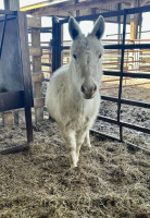 MULE 3 YR GREY JOHN. "MARSHMELLOW" Marshmallow is a 3 yr old John. He is broke to ride. He is cute mule that wants to be loved. HORSE SALE FEB 21, 2026 SADDLES START @ 6PM | 134 | $ 1,100.00 |
