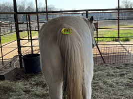 QH 16 YR GREY GELDING "JASPER" Jasper is a QH 16yr old grey gelding that stands about 15 hands tall. He is super gentle to handle, he is good to be groomed, picks up his feet, stands tied, loads, stands to be saddled and mounted. Walk up and catch him anywhere, he’s good for a bath. He is one hand broke with a good stop. He will walk, trot and lope off when ask. He trail rides like a dream. He will go thru the pond, up and down steep hills, ride thru brush, walk over logs, and pretty well goes where you point his nose. We have swung and throw a rope off him, drug a cone, carried the cone on him, and not much seems to phase him. If you know the basics to riding I’d say you can him. HORSE SALE FEB 28,2026 @ 6 PM WITH SADDELES N HORSES START AROUND 7:30PM | 225 | $ 1,050.00 |