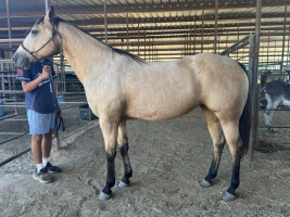 QH 12 YR BUCKSKIN MARE HAS BEEN TURNED OUT IN A TOP BREEDING PROGRAM RAISING BABIES FOR SERVAL YEARS. SHE WAS USED TO BE A FINISHED HEAD HORSE, WAS STARTED ON THE BARREL AND TRAIL RODE PRIOR TO BEING A BROODMARE. JUST NEEDS A TUNE UP. NO BUCK/REAR. PAPERS ARE NOT IN HAND BUT WILL HELP NEW BUYER GET A NEW COPY JUST NEEDS TO BE FILED. PLEASE GET WITH ME FOR THAT INFO. 903-268-0668 OCTOBER 11,2025 HORSE SALE @6PM | 554 | $ 2,500.00 |