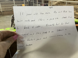 QH 11 YR BAY MARE 11-year-old big and thick frame built really good. She’s a good ride. Stands tied up to brush and saddle. Recently had her feet trimmed and she’s ready to go. Where is a winter blanket good and comes running into the feed bucket. HORSE SALE JANUARY 10,2026 | 429 | $ 1,150.00 |