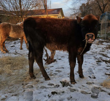 ANGUS MIX 4-5 MONTH RED BULL. "RED BULL" “Redbull” is a 4/5 month old red Angus mix bull calf. He has been bottle fed since 5 weeks old. He eats hay and feed just fine. Redbull is very friendly and will pull along in a halter. He's had kids playing with him almost daily. JANUARY 31,2026 HORSE SALE SADDLES START AT 6 PM HORSES AROUND 7:30PM | 728 | $ 1,375.00 |