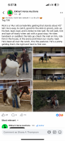 PT PONY 14 YR SOR/WH GELDING Rick is a 14yr old sorrel/white gelding that stands about 42" tall. He is easy to catch, good for the kids to groom, pick up his feet, lead, load, and is broke to ride well. He will walk, trot and lope off easily when ask with a good stop. He rides bareback or saddled, the kids go check the mail on him, ride him in the house, in the arena and Down our county road. He's been all over the ranch, thru the pastures. He's a pretty gelding that's the right and hard to find size. DEC 6 2025 HORSE SALE | 735 | $ 1,850.00 |