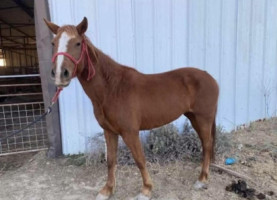 QH 3 YR CHESTNUT MARE "DIAMOND" Diamond is a 3 year old chestnut mare that has been rode quite a bit outside. She will go in water , up hills, down hills, travels nicely and loads like a horse should. She stands 14.1 and is as stout of a 3 year old as I’ve seen in a long time. VALENTINES DAY HORSE SALE FEB 14, 2026 AT 6 PM (PERFECT DATE NIGHT) | 22 | $ 3,100.00 |