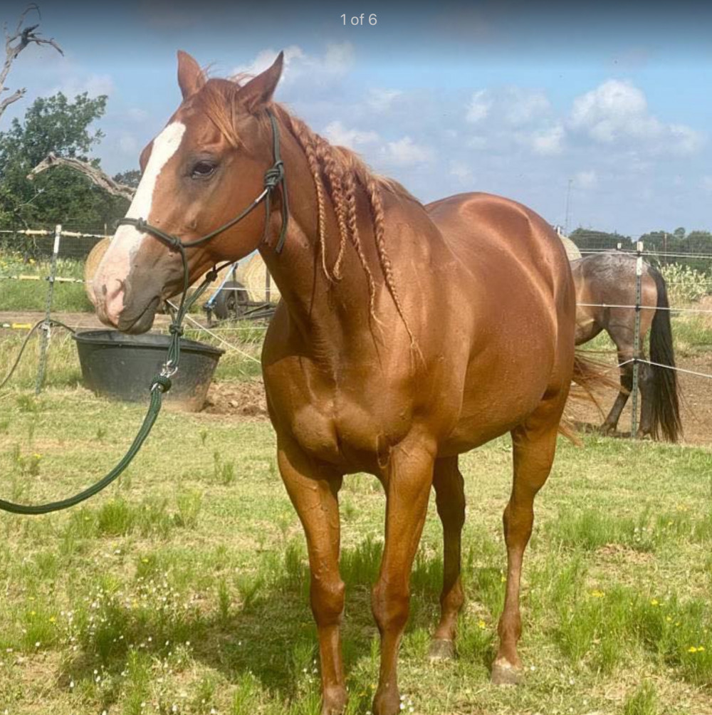 I got her September 25, 2023 from a really bad situation. She was starved for three months. I took her to the vet to find out she had a heart murmur. I put her on a special diet and really focused on her well-being. Heart murmur is completely gone. Teeth were floated December 15. Her hooves were trimmed two weeks ago. She’s on a great path to being 100% fully recovered. She is extremely willing and has a big heart. A forgiving mare is what she is. She is not perfect right now, she is still working on her balance and her muscle due to losing it all. Bringing her to the auction has not been an easy decision but it’s something we might have to follow through with. Papers in hand.