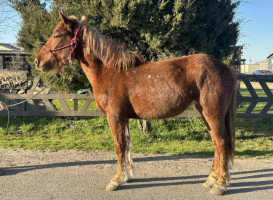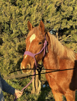 Emma Lou is an 18 month old Suffolk punch/Belgian cross filly. Stands about 15 hands tall. She is in your pocket gentle. She leads, loads, stands tied, good for a bath, loves attention and easy to catch. She will be a great prospect for riding or driving and has a great personality to train. Everyone who comes by to visit loves Emma as she’s always in the middle of everyone saying hi.