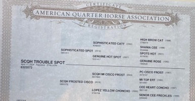 On the dam's side, Scqh Trouble Spot's bloodlines trace back to PC Cisco Frost, with the renowned Sun Frost just one generation removed from his papers. This exceptional mare has certainly lived up to the saying that it takes a great mare to produce a great foal, especially impressive considering this is her first offspring.
