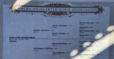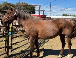 GFR Cheyenne Jo Reeves is a sweet mare seeking a loving, relaxing home where she can be cherished as a family member. Having spent most of her life as a broodmare, she's now ready for a change of pace. Despite her great bloodlines, Cheyenne came up open this year, making her available to give her a loving home. This gentle horse is looking for a family to call her own, where she can enjoy companionship and care without the pressures of breeding. If you're searching for an equine companion to love and spoil, Cheyenne could be the perfect addition to your family, offering a chance to give this former broodmare the peaceful retirement she deserves.