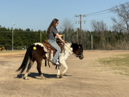 Love 2 yr old bay/white mare. She is a project pony. She has had a couple rides. She is thick and stout! Perfect pony size and with Time she be a good little riding pony