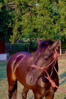 Meet Hondo, a 6-year-old gelding pony who's everything you could want in a smaller package! This gentle boy is easy to catch (no games of tag required!), broke to ride, and has all his ground manners down - he'll pick up his feet and load with ease. At just 6 years old, Hondo is young enough to go in whatever direction you'd like, whether that's trails, driving, or being someone's best buddy. He's got that "just right" size that makes him perfect for kids. Hondo is basically the goldilocks of ponies - not too big, not too small, just perfect. He's got a great start