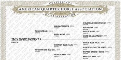 **DAM:** RO Cowboys Blu Gal brings Cowboy Blue Haze, Little Blue Haze, Cowboys Dakota Jewel, and Peptos Ann bloodlines - proven cutting and performance genetics! Goes back to foundation on top and Pepto Stylish Boon and the great Peptoboonsmal - legendary cutting horse bloodlines! π