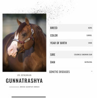 With Gunnatrashya's champion reining record and proven cutting bloodlines on bottom, this stallion has the genetics to excel in multiple disciplines! Eligible for Royal Crown Roping incentives!
