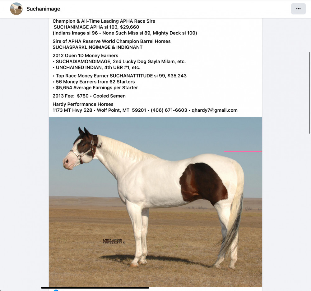 Suchanimage: Champion & All-Time Leading APHA Race Sire, SI 103, $29,660 LTE