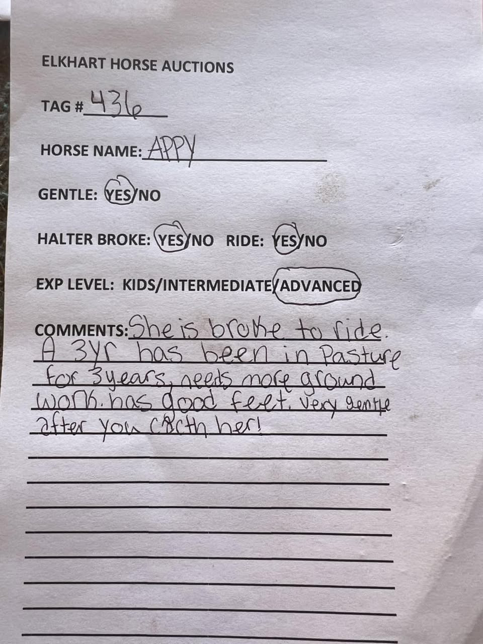 APPY 6 YR RED ROAN MARE (#436) OCTOBER 4TH 2025 HORSE SALE AND USED TACK STARTS @1PM W TACK