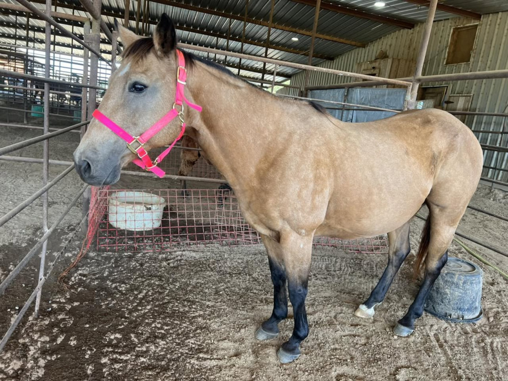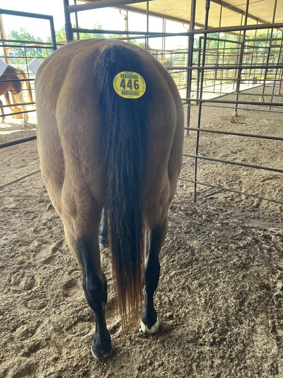 QH 16 YR BUCKSKIN MARE (#446) OCTOBER 4TH 2025 HORSE SALE AND USED TACK STARTS @1PM W TACK