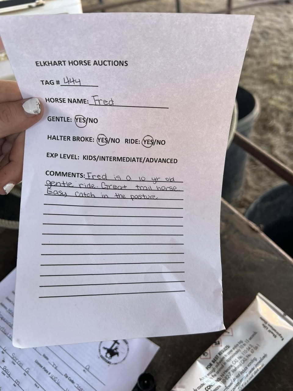 FRED IS A TRAIL HORSE. GREAT TRAIL HORSE AND HE IS EASY TO CATCH IN PASTURE