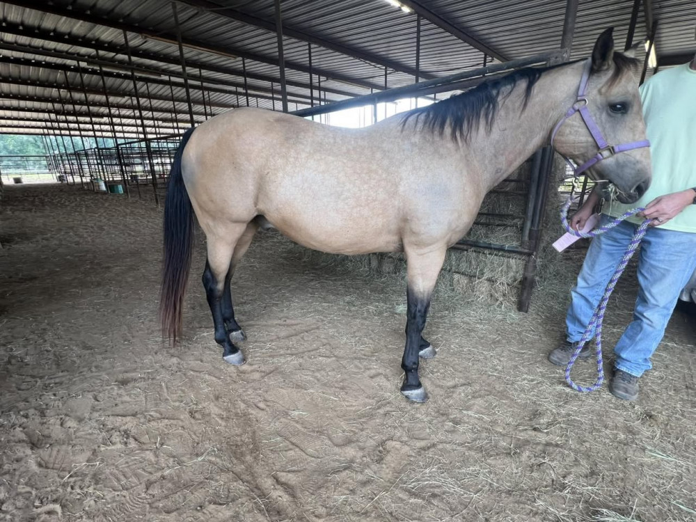 QH 20 YR BUCKSKIN GELDING (#744) OCTOBER 18 2025 HORSE SALE STARTS @ 6 PM W SADDLES