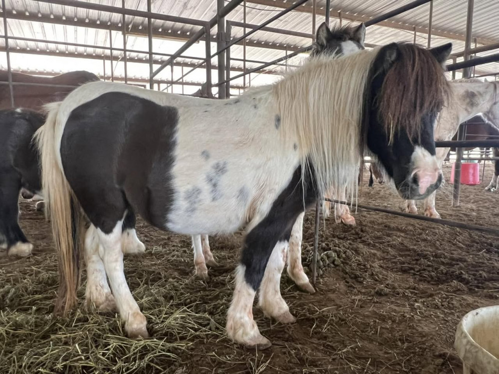 PT PONY 7 YR BROWN/WH MARE. "DAISY" (#839) OCTOBER 25 2025 HORSE SALE SADDLES START @6 PM
