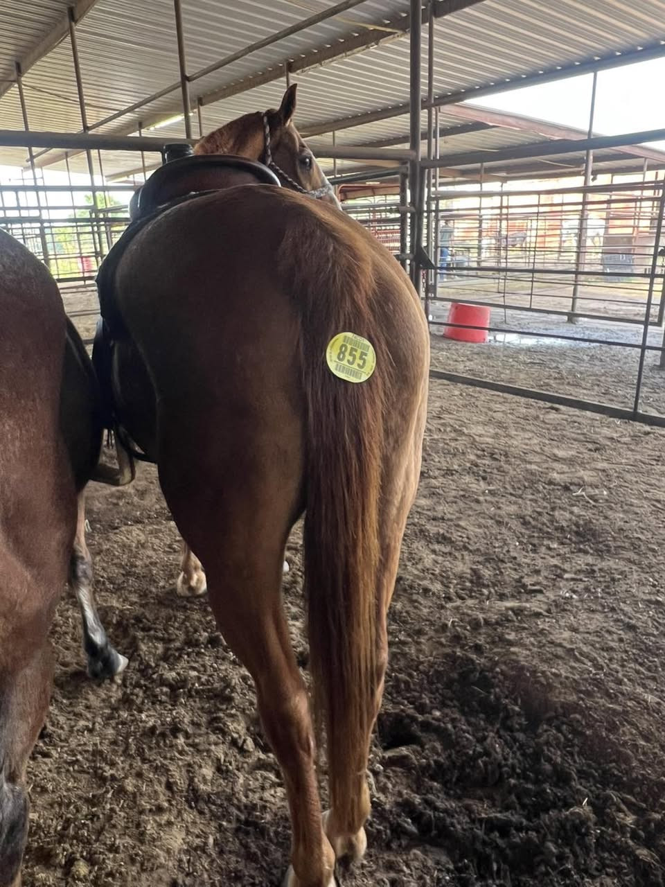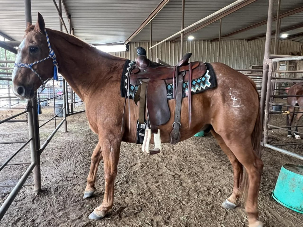 QH 18 YR SORREL GELDING (#855) OCTOBER 25 2025 HORSE SALE SADDLES START @6 PM