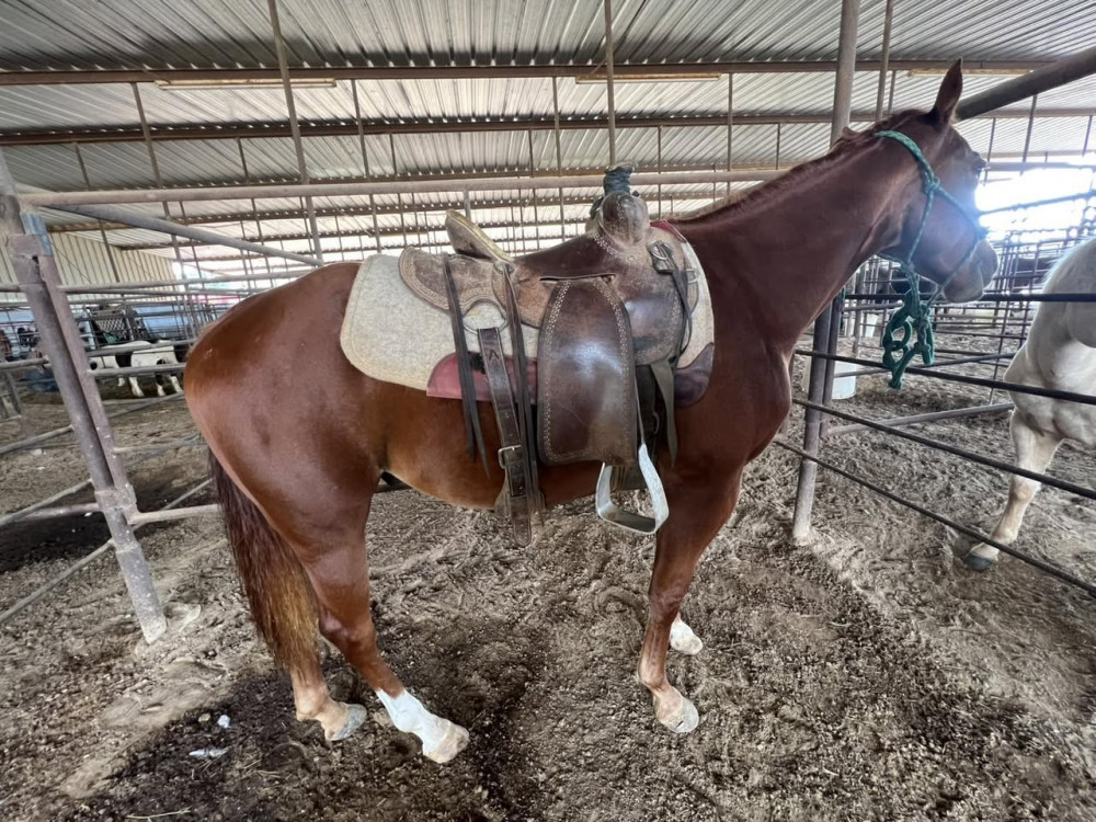 R QH 4 YR SORREL GELDING (#868R) OCTOBER 25 2025 HORSE SALE SADDLES START @6 PM