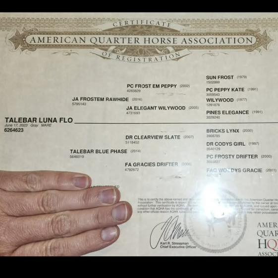 AQHA Talebar Luna Flo aka LUNA is the sweetest, kindest eyed filly you will meet. Shes the first to greet you and the last to leave you. Gentle on the ground. Halter broke, bathes, Loads, and ready to go. HAVE I mentioned shes already been in the show ring and placed in smaller halter shows. Luna is a really big lover too.