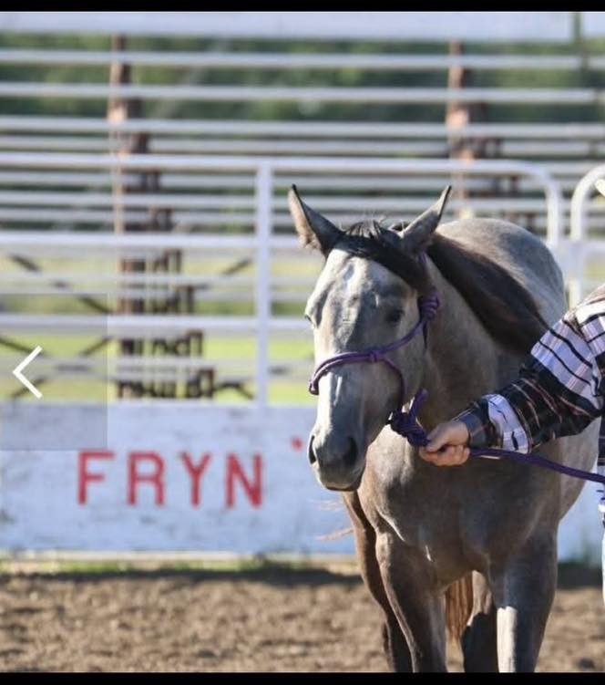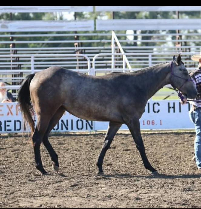REG AQHA 2YR OLD GRAY MARE (#215R) NOV 8 TH HORSE SALE 2025 SADDLES START @6PM