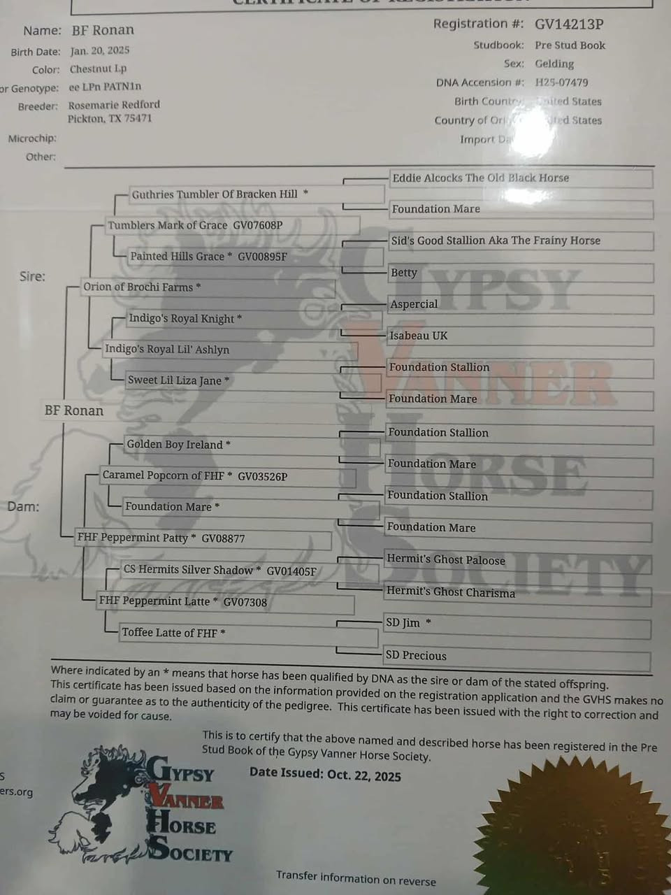 REG GYPSY VANNER 9 MONTH OLD GELDING NOV 8 TH HORSE SALE 2025 SADDLES START @6PM