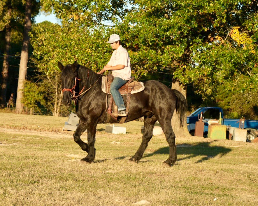 PERCHERON 17 YR OLD BLK GELDING (#224) NOV 8 TH HORSE SALE 2025 SADDLES START @6PM