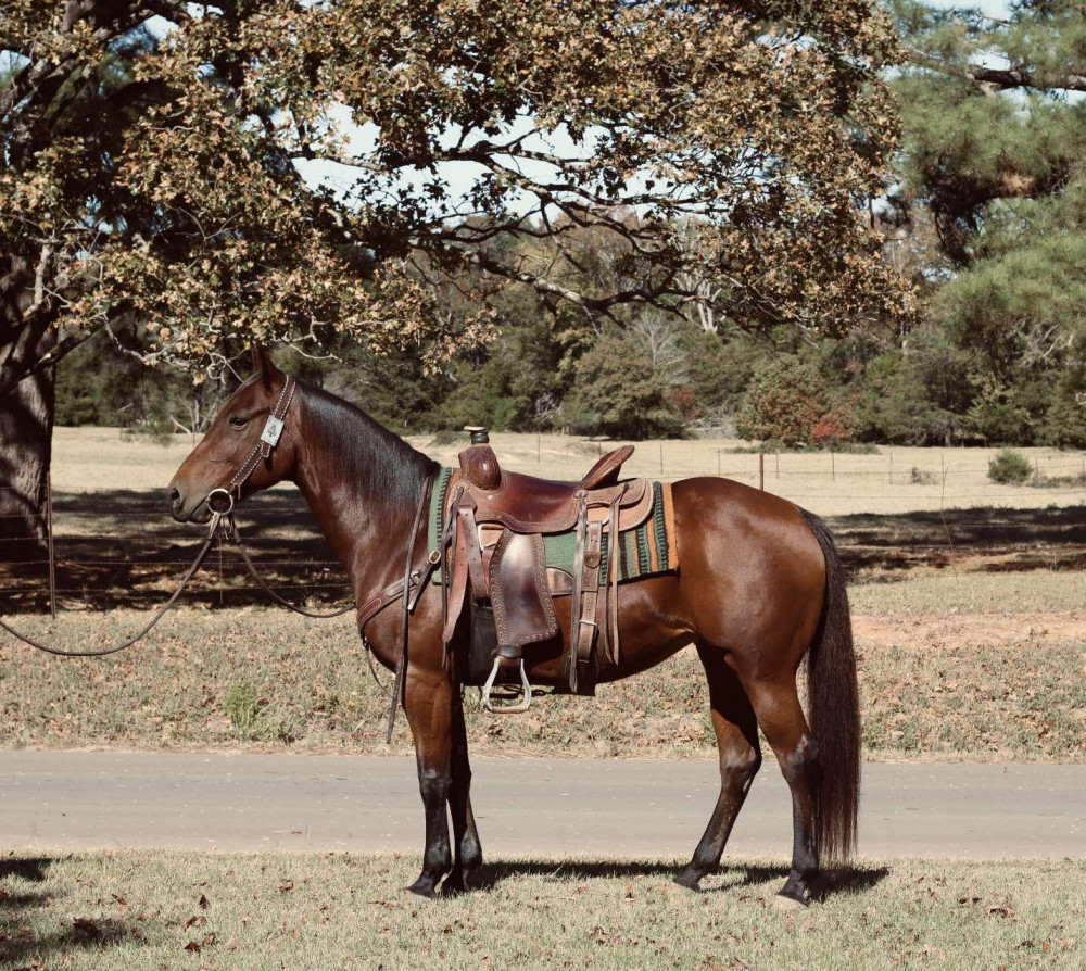 QH 4 YR OLD BAY FILLY (#221) NOV 8 TH HORSE SALE 2025 SADDLES START @6PM