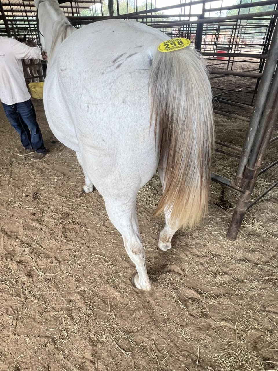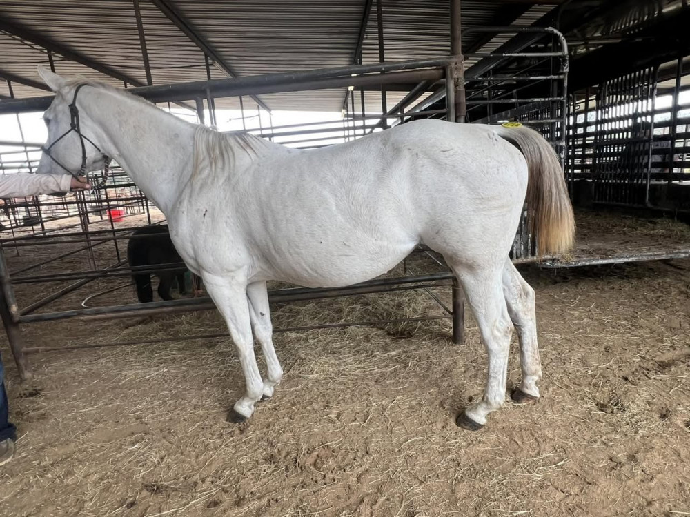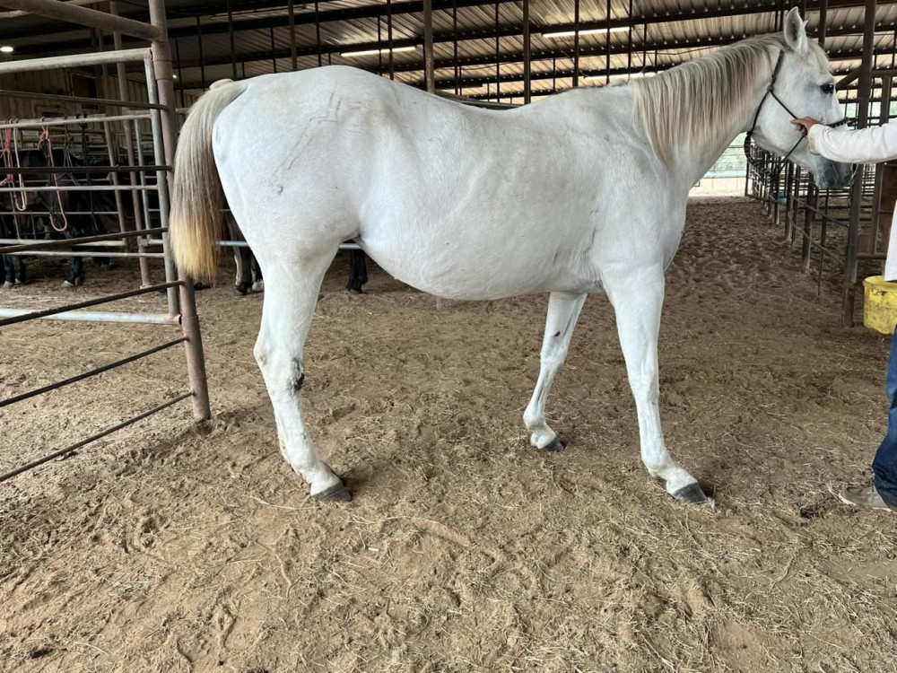 QH 9 YR WHITE MARE (#258) NOV 8 TH HORSE SALE 2025 SADDLES START @6PM