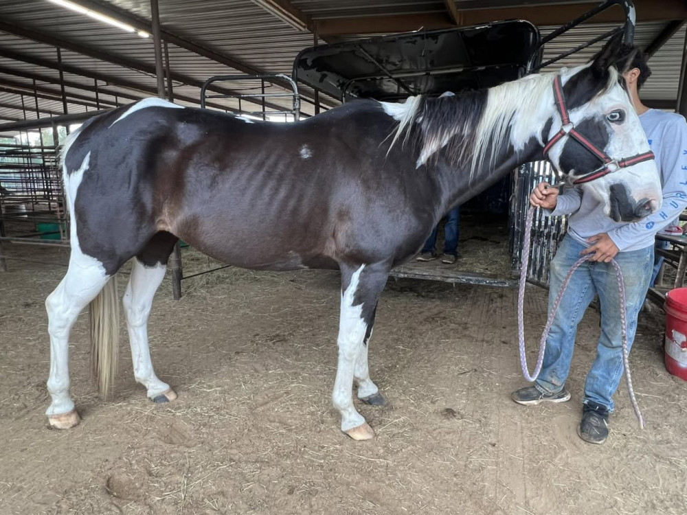 PINTO PT 8 YR BAY/WH GELDING (#259) NOV 8 TH HORSE SALE 2025 SADDLES START @6PM