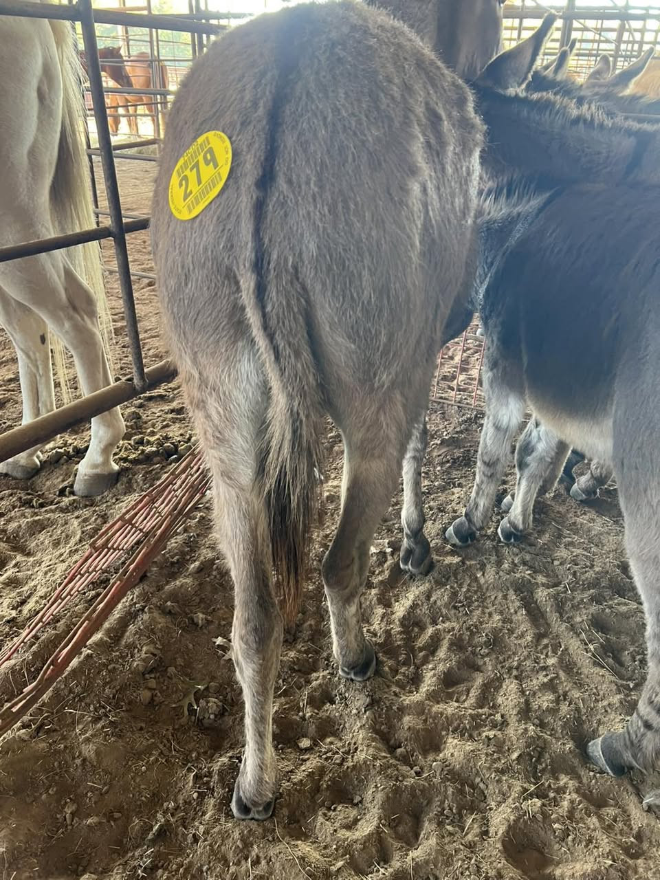DONKEY 3 YR GREY JENNY (#279) NOV 8 TH HORSE SALE 2025 SADDLES START @6PM
