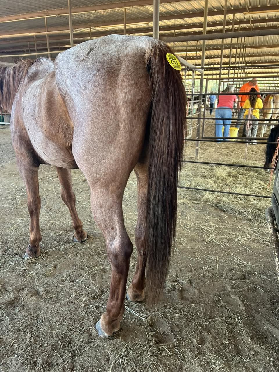 QH 12 YR RED ROAN GELDING (#297) NOV 8 TH HORSE SALE 2025 SADDLES START @6PM
