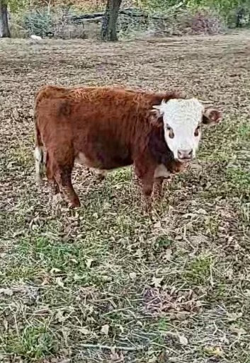 MINI HERFORD 10 MONTH RED/WH BULL (#301) NOV 8 TH HORSE SALE 2025 SADDLES START @6PM