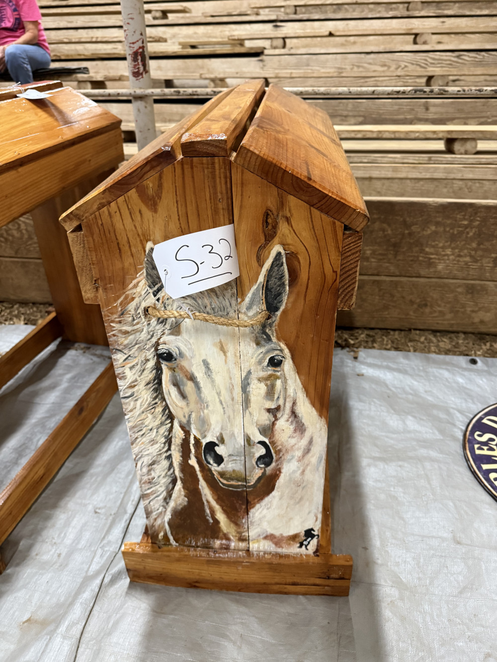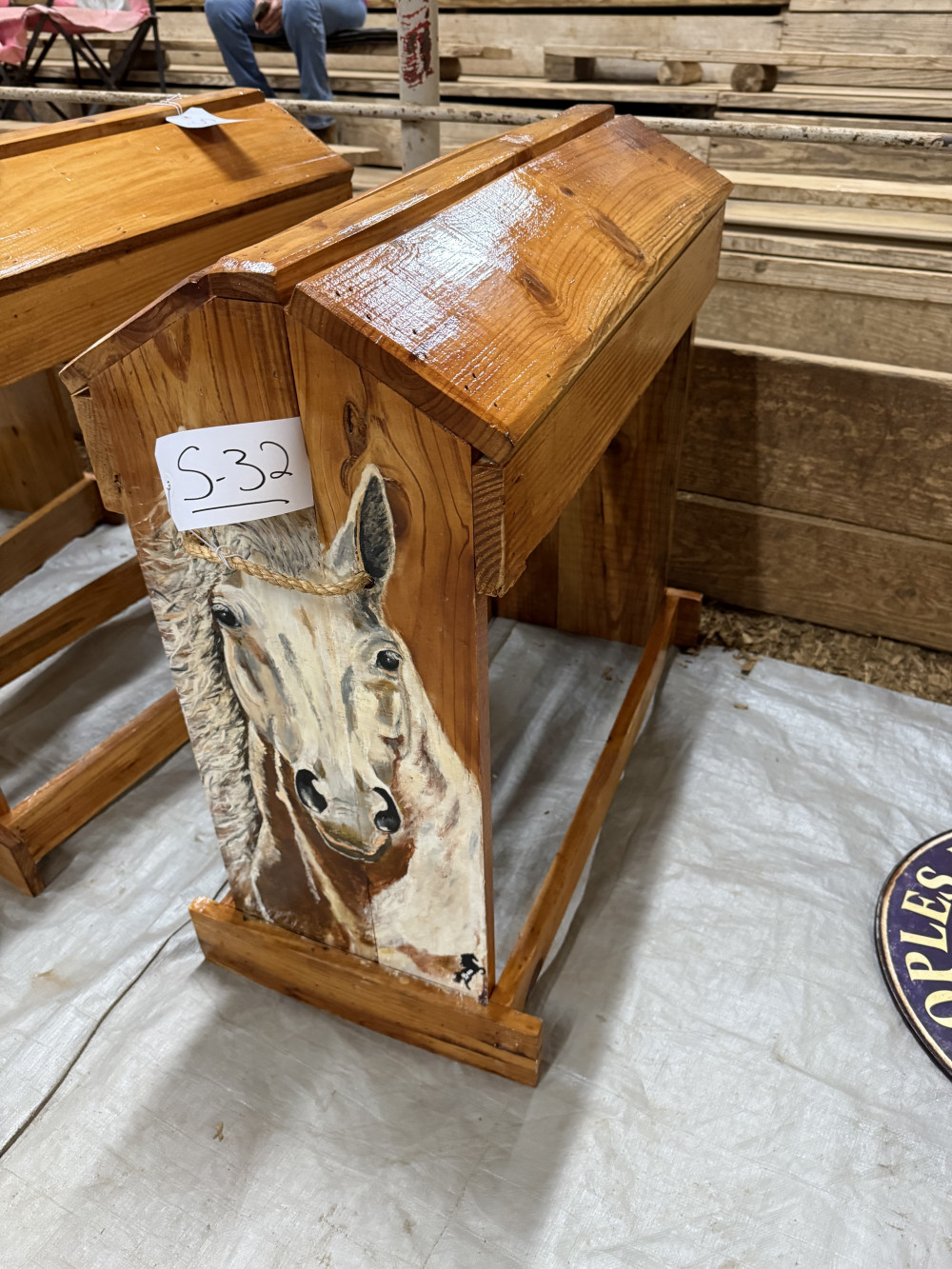 HAND PAINTED WOOD SADDLE RACK WHITE (#S-32) NOV 8 TH HORSE SALE 2025 SADDLES START @6PM