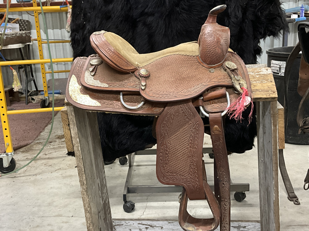 SHOPMADAE SILVER MOUNTED 12” SADDLE (#140) ESTATE SALE