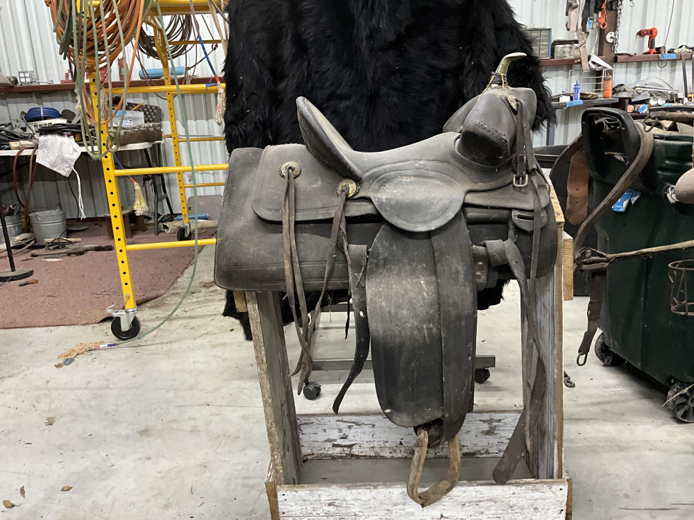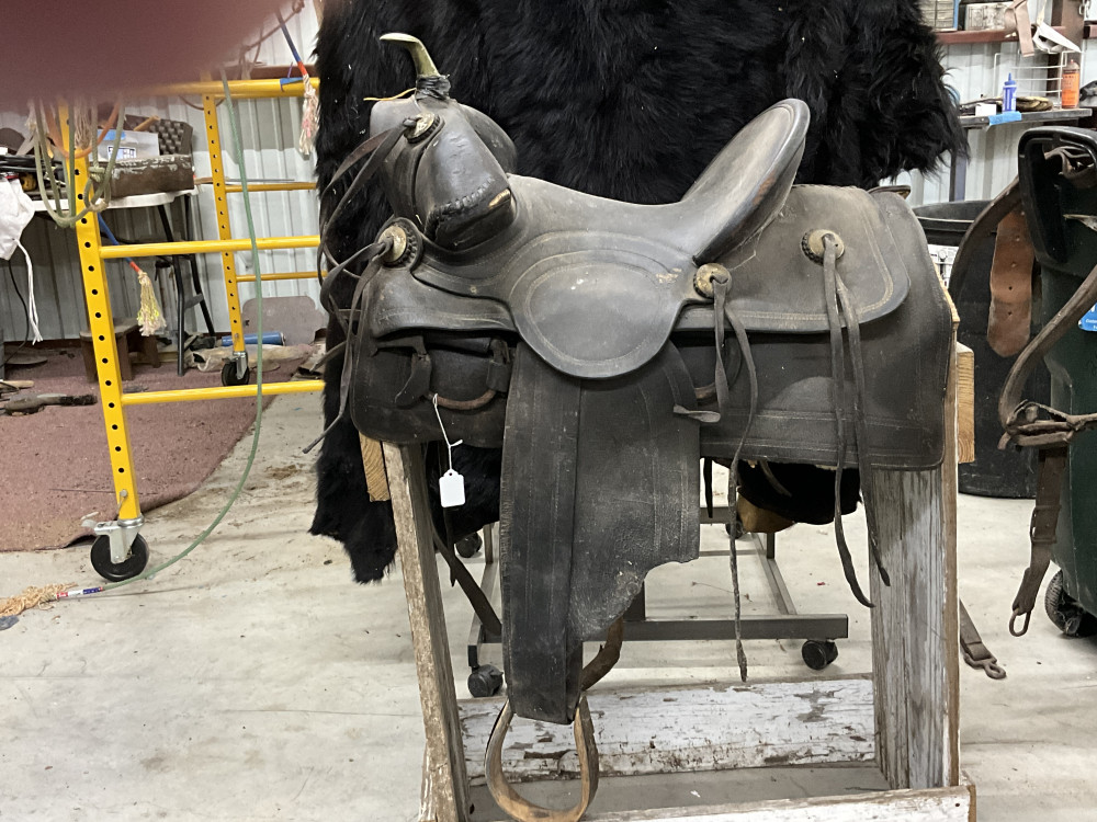 SHOPMADE 15” BRASS HORN SADDLE (#141) ESTATE SALE