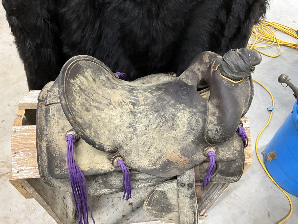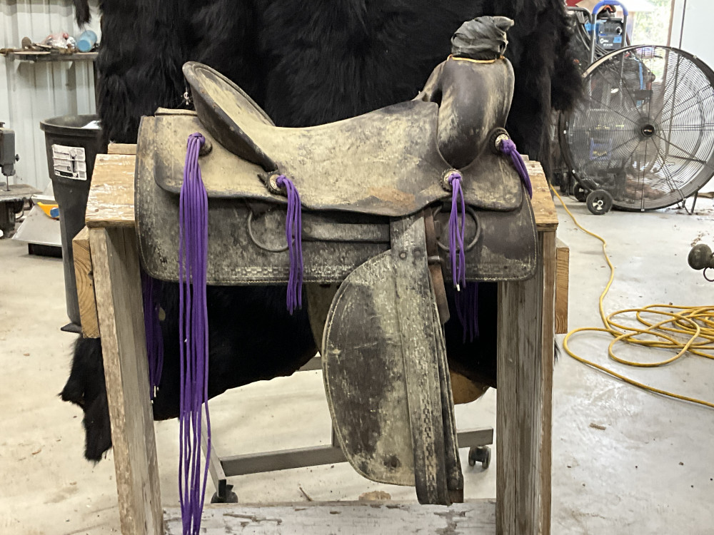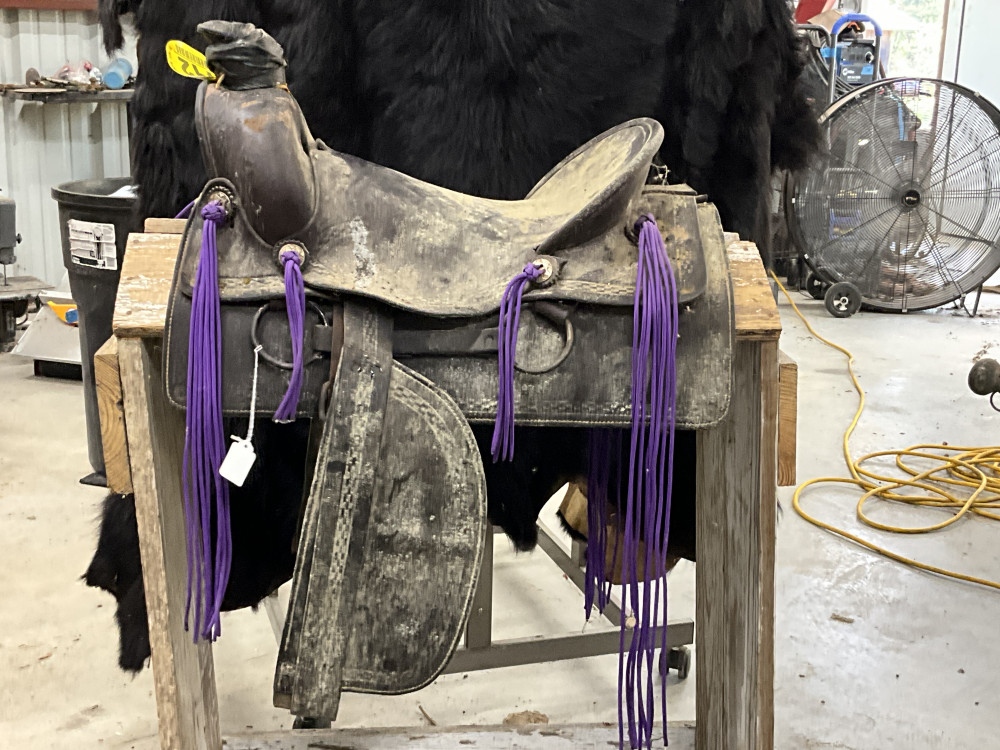 J.C. HIGGINS 15” SADDLE W/ PPURPLE TASSELS (#167) ESTATE SALE