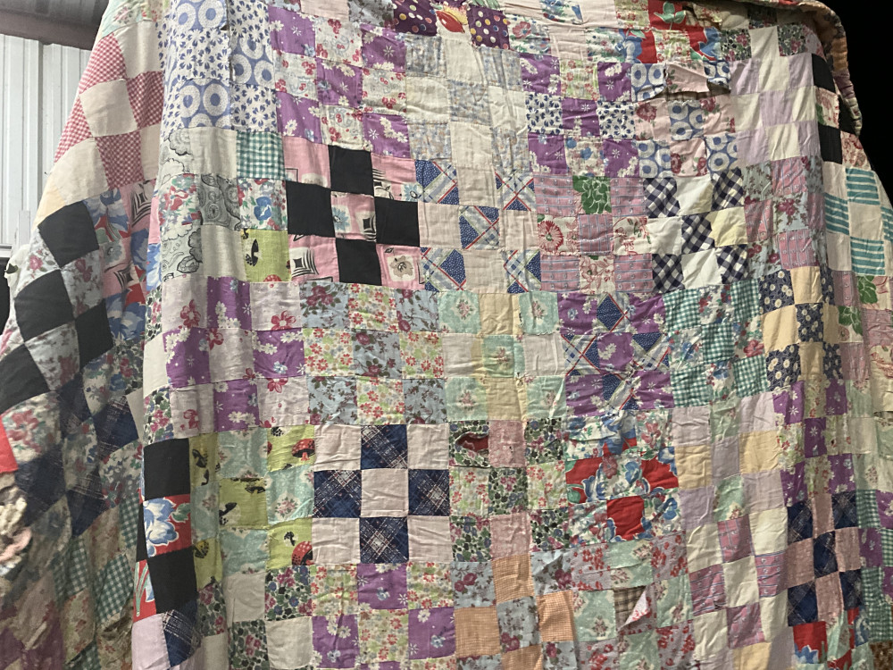 AMERICAN FLAG AND NINE PATCH QUILT (#214) ESTATE SALE