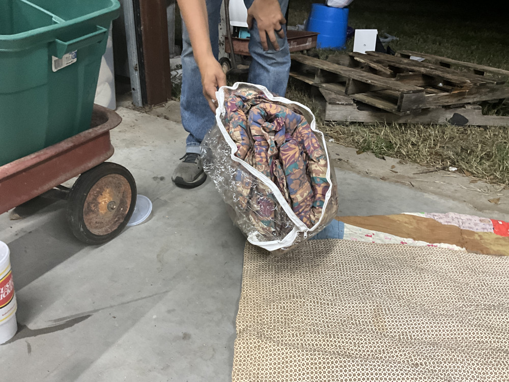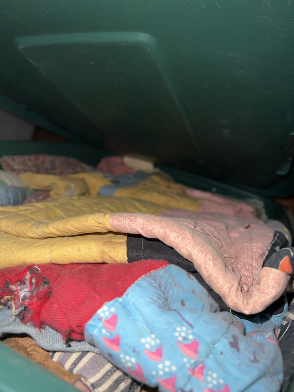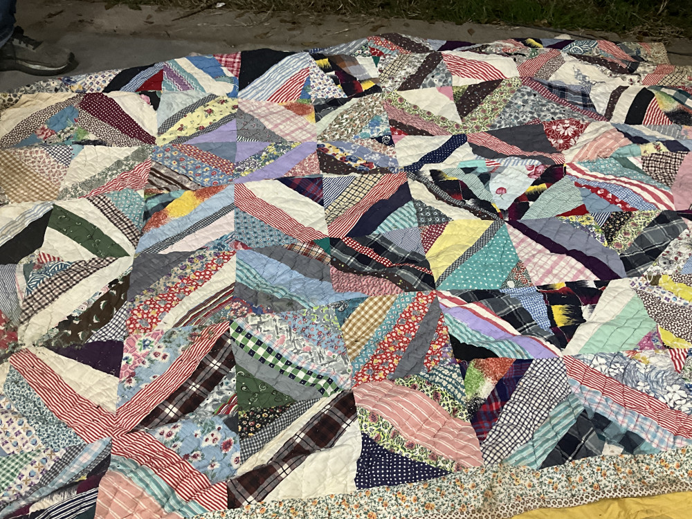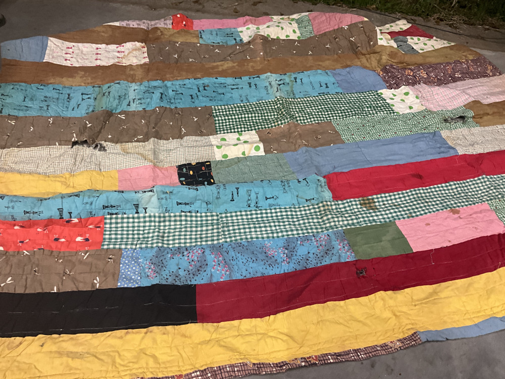 (2) HANDMADE QUILTS AND SHOPMADE BLANKET IN BAG (#244) ESTATE SALE