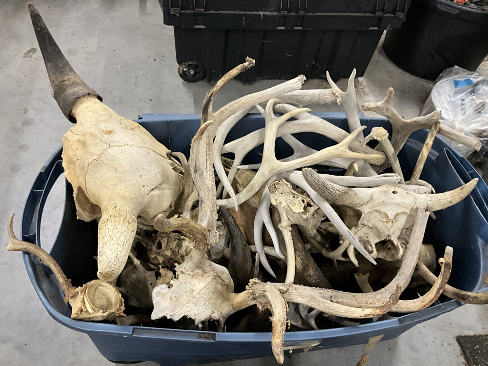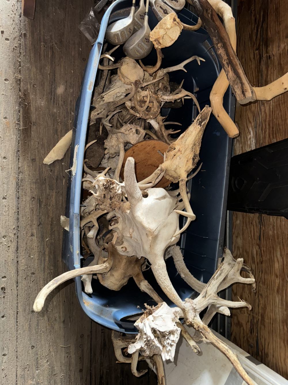 MISC BOX OF ANTLERS AND SKULLS (#260) ESTATE SALE