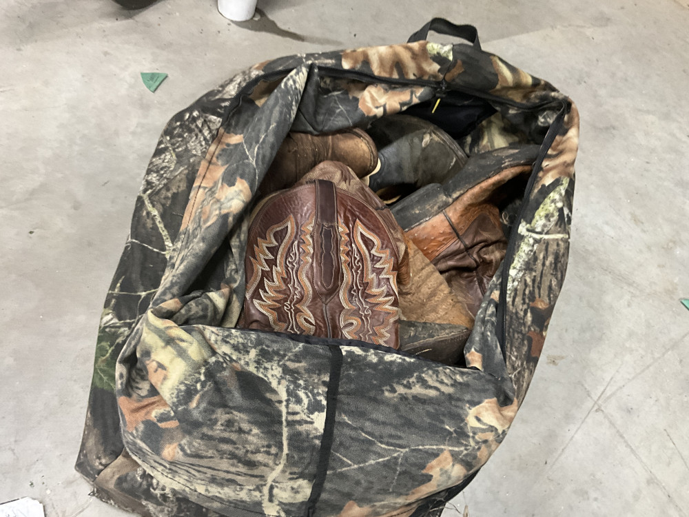 CAMO BAG AND BOOTS (#300) ESTATE SALE
