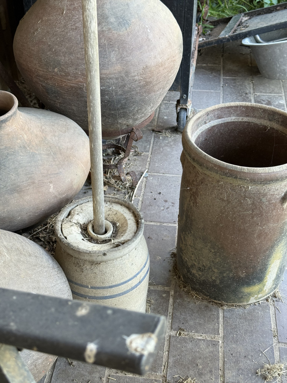 BUTTER TURN WITH LIGHT AND TURQ POT (#356) ESTATE SALE