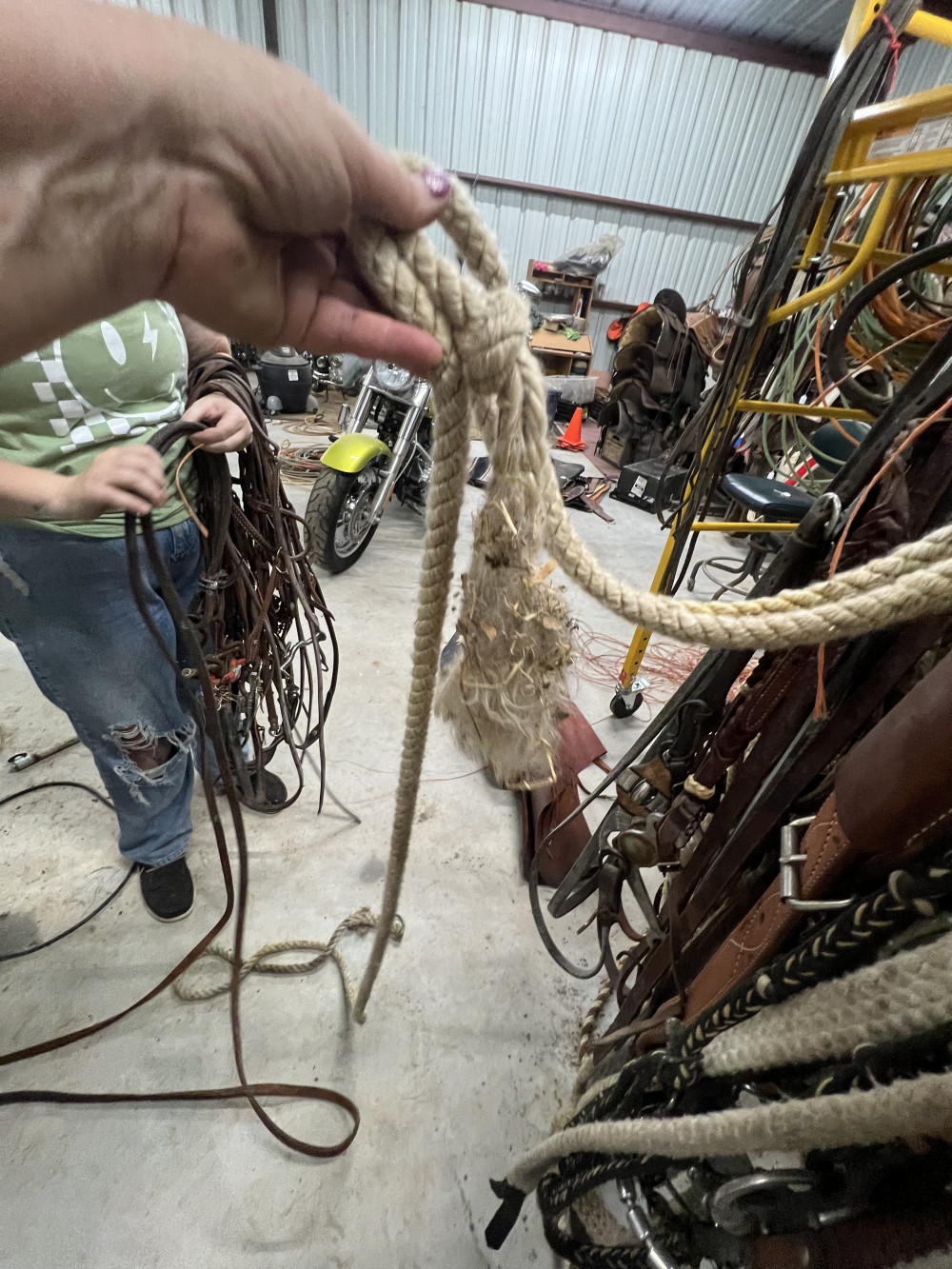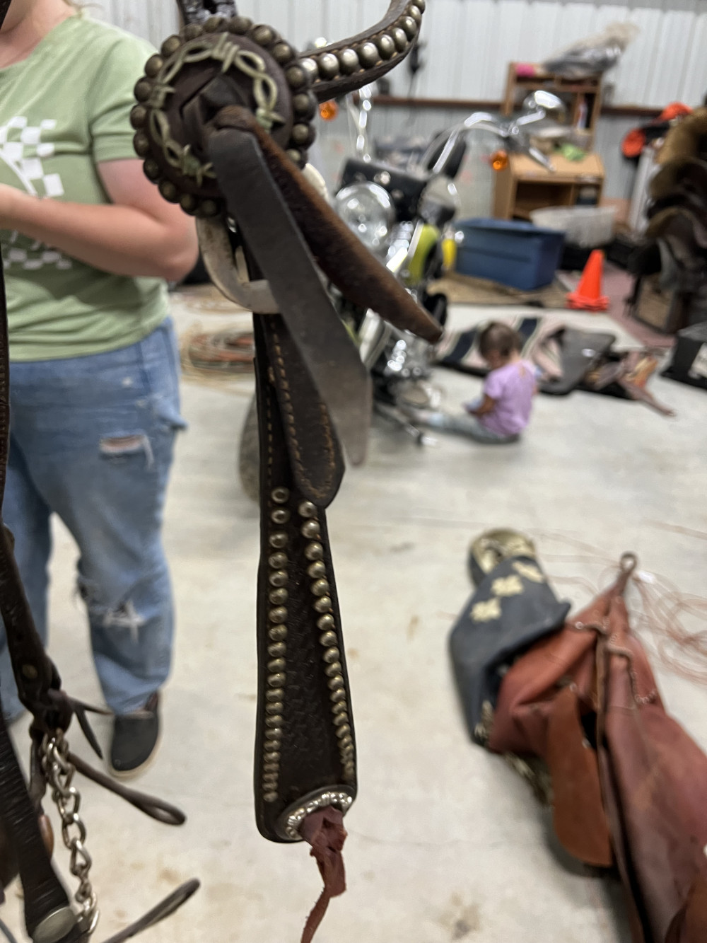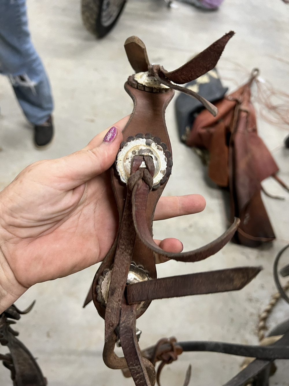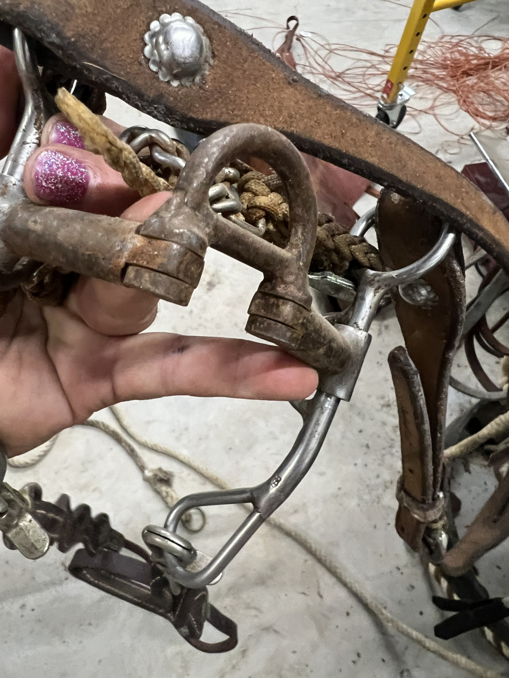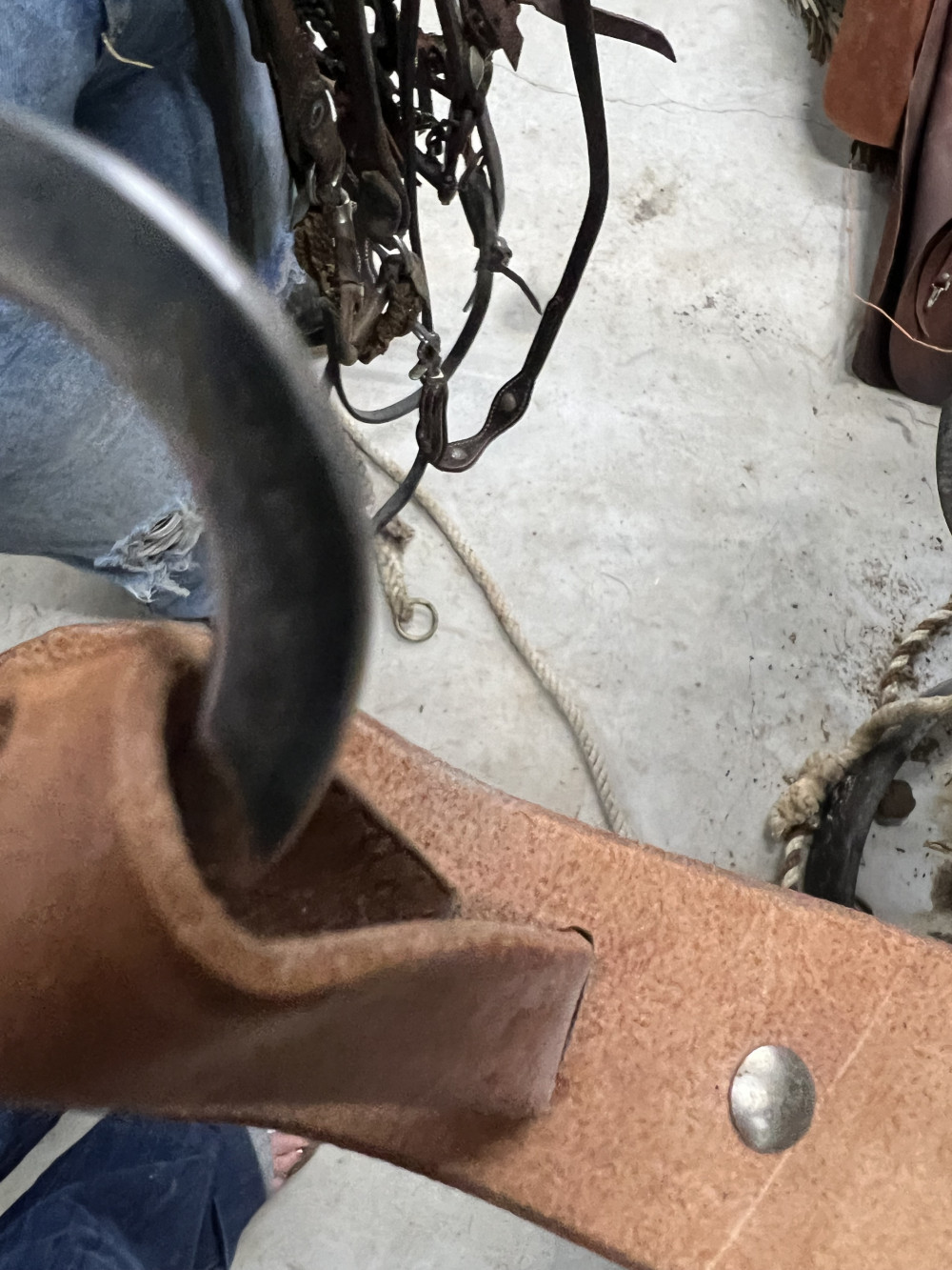 4 COMPLETE HEADSTALLS, 2 BRIDLES, AND CHOKE ROPE (#402) ESTATE SALE