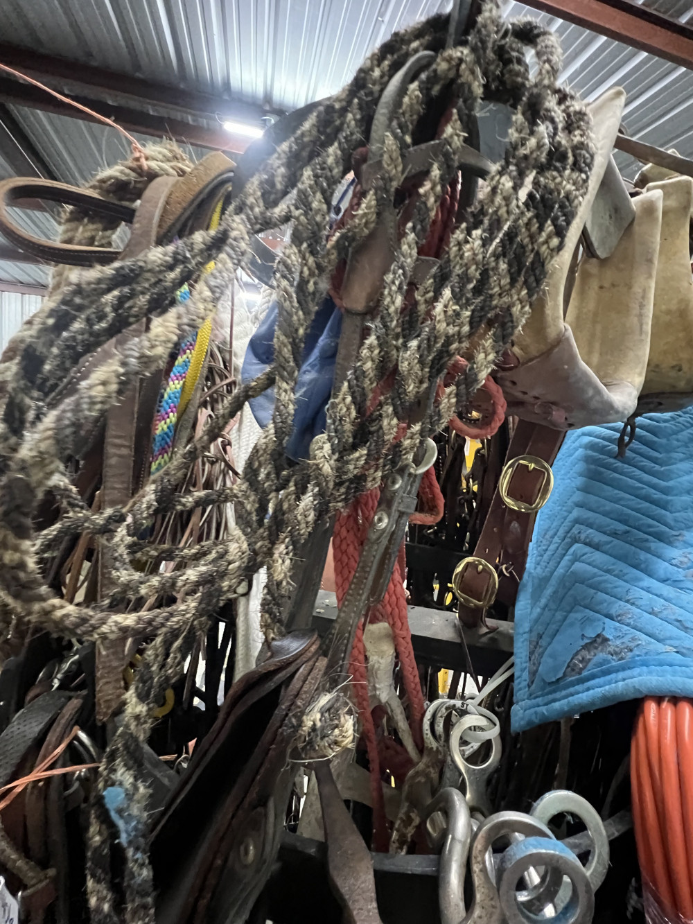 HORSE HAIR REINS, HEADSTALL RIENS, AND ANTLERS MIS BITS (#408) ESTATE SALE